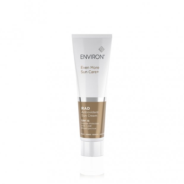 De RAD Antioxidant Sun Cream SPF 15 van Environ is een luchtige zonnecrème die reflecterende zonnefilters combineert met een lage dosis absorberende filters en verrijkt is met essentiële antioxidanten. Deze formule met breedspectrum bescherming tegen UVA- en UVB-stralen beschermt je huid van gelaat en lichaam op een doeltreffende en veilige manier tegen de schadelijke effecten van zon en licht .